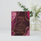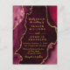 Cette faire-part de mariage élégante et séduisante est ornée d'un arrière - plan en marbre rouge agate aux accents de parties scintillant en faux or. Le texte combine écriture manuscrite et polices sans serif modernes pour un look élégant et sophistiqué. Il conviendra parfaitement aux mariages d'automne et d'hiver.