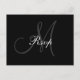 Simple Elegant Black and White et Grey Wedding Carte Postale RSVP. Elke Clarke ©. Customisez avec votre monogramme, couleurs mariages et renseignements personnels.