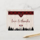 Carte unique avec plaid de buffle rouge, silhouette de forêt, coeur de plaid de buffle rouge pour monogramme, hatchets, superbe script LUMBERJACK & JILL PARTY avec effet plaid rouge. Utilisez l'outil Personnaliser pour ajouter vos informations. Pour les articles correspondants s'il vous plaît, visitez mon Lumberjack et Jill Party.