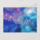 Mariage classique merci modèle de carte postale avec un bleu confetti couvert aquarelle sur l'avant, et un message personnalisable à l'arrière. Vous pouvez le personnaliser avec le bouton customiser. Envoyez votre message de remerciement mariage à vos amis et à votre famille en utilisant cette carte postale de remerciement simple et magnifique avec les mots "merci" écrit dans un script d'écriture blanc superposé.