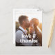 Il s'agit d'un carte de remerciements mariage bohème utilisant une police de style vintage rétro avec un design photo moderne et simple, imprimé sur une carte postale. Le verso comprend un message de remerciement que vous pouvez personnaliser ou laisser vide si vous préférez écrire un message à la main. Modifiez facilement les couleurs, le texte et les photos selon vos besoins. Veuillez contacter le concepteur pour toute question relative à ce design.
