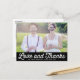 Donnez à vos cartes de remerciement une touche amusante et nostalgique avec ce carte de remerciements de mariage photo horizontal personnalisé. Conçue avec une typographie "amour et merci" d'inspiration rétro sur votre photo mariage préférée, cette carte allie charme vintage et personnalisation moderne. Ajoutez votre photo, vos noms et un message personnalisé pour créer un remerciement élégant et mémorable pour vos invités. La disposition horizontale offre une sensation propre et contemporaine tout en soulignant votre moment particulier. Parfait pour les mariages à thème vintage ou les couples qui aiment une esthétique ludique et rétro, cette carte permet de partager facilement votre appréciation d'une manière qui se sent personnelle et unique.