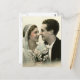 Photographie colorée vintage d'un couple romantique qui vient de se marier. La mariée porte un voile typique du début du XXe siècle. Beaux autocollants qui peuvent être utilisés à plusieurs fins - félicitations pour votre mariage, heureux anniversaire, ou un cadeau de douche nuptiale.