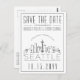 Une carte postale unique pour un mariage qui se déroule dans la belle ville émeraude de Seattle. Un mariage unique sauve la date. Cette invitation présente une illustration stylisée de l'horizon unique de la ville avec son nom en dessous. Ceci est suivi par vos informations de jour de mariage dans un style ouvert assorti. Au verso du billet se trouve votre adresse. Tous les éléments individuels de la carte invitation sont déverrouillés, alors n'hésitez pas à modifier tous les détails nécessaires tels que les tailles de police, les styles et plus en utilisant la fonction de personnalisation. Vous pouvez ajouter une photo à l'envers et y ajouter un filtre noir et blanc. Amusez-vous à être créatif et à en faire votre propre !