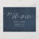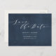 Marine bleu + blanc mariage élégant enregistrer la date carte postale. Conception de texte de script moderne et minimale. Partie d'une collection.