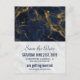 Mariage enregistrer la carte postale date avec un élégant et élégant arrière - plan de marbre bleu marine et or. La moitié inférieure de la carte a également un motif en marbre blanc cassé, avec votre texte personnalisé écrit sur le dessus.