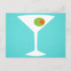 Cette carte Postale Martini Movie Classique présente un arrière - plan turquoise et l'image d'une silhouette blanche d'un verre martini. A l'intérieur du verre se trouve une glorieuse olive verte avec un pimento orange. C'est une carte postale amusante pour tous ceux qui souhaitent être un personnage dans un film classique. Réveille pas, s'il te plaît !