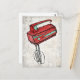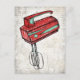 Electric Hand Mixer est équipé d'un mélangeur de cuisine vintage en rouge avec des garnitures blanches, aqua et noires sur un arrière - plan en détresse blanc.