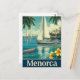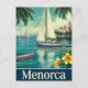 Ce magnifique poster vintage saisit le charme tranquille de la côte de Minorque, où d'élégants voiliers dérivent le long des eaux turquoise sous un ciel ensoleillé. Les rivages rocheux et la palette méditerranéenne sont rendus dans des tons rétro chaleureux, évoquant l'esprit détendu des voyages sur l'île du milieu du siècle. Un hommage intemporel à la beauté baléaire de Minorque, idéal pour les amateurs de décoration nautique et côtière classique.