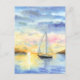 Mer au coucher du soleil. Un mignon yacht feuille la baie et va en mer. L'illustration de l'aquarelle a été dessinée et scannée. Paysage aquarelle réalisé en plein air en 2024.