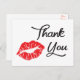 Dis Merci avec un baiser ! Cette carte postale de remerciement amusante comporte un baiser rouge à lèvres surligné contre un arrière - plan blanc immaculé. Les cartes postales personnalisées sont l'alternative économique aux cartes de voeux lorsque vous voulez envoyer une note de remerciement rapide. Super pour... Mariages, douches nuptiales, fêtes Entreprises Montrez de la gratitude à vos amis et à votre famille pour les cadeaux Joignez-vous à des paniers cadeaux et des sacs de bonté Actes de gentillesse Autres produits et cadeaux que vous pourrez apprécier....... D'autres cartes de Merci amusantes que vous pouvez profiter...
