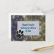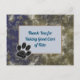 Avez-vous quelqu'un qui s'occupe de vos animaux de compagnie lorsque vous êtes en vacances ou quelqu'un qui marche votre chien tous les jours? Cette carte postale d'appréciation est ornée d'un motif abstrait bleu et or tourbillonné, élégant et ressemblant à un motif en marbre. Un solide rectangle bleu clair et or est centré sur l'avant de cette carte postale et fournit à l'arrière - plan vos mots d'appréciation. Un empreinte de patte noir est présenté à travers le coin inférieur du rectangle solide central. "Merci pour prendre soin de Fido" peut facilement être personnalisé avec le nom de votre animal de compagnie.