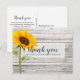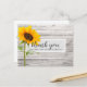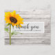 Cette carte de remerciement pour un anniversaire représente une texture de bois avec un tournesol et utilise une typographie manuscrite et moderne. Le verso de la carte peut être personnalisé ou le texte peut être supprimé pour un message manuscrit.