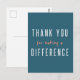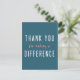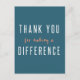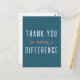 Carte postale simple et élégante avec la citation « Merci de faire une différence » en typographie moderne blanche et orange sur fond sarcelle, parfaite pour une infirmière, un enseignant, un ami, un proche ou un aidant.
