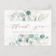Cette carte postale de remercient les feuilles peints d'aquarelle eucalyptus, vert botanique et de parties scintillant d'or avec script or.