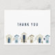 Montrez à vos invités combien vous appréciez leur présence et les cadeaux avec ces cartes de remerciement de mariage de plage côtière. Simple design de maison de plage dans une palette de couleurs bleu et blanc apaisant, ajoutez votre adresse de retour et merci message à l'arrière.
