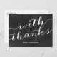 Cette carte postale de remerciement décontractée-chic présente le texte "Avec remerciements" dans une police de script fantaisiste contre un arrière - plan de style tableau de bord.