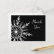 Customisez l'élégante carte postale de Merci d'hiver Black and White Snowflake avec votre message personnel d'appréciation et de gratitude pour les cadeaux reçus après une fête d'anniversaire de décembre, janvier ou février, une douche nuptiale, des vacances de mariage ou de Noël. Cette carte postale d'hiver personnalisée et festive présente un design complexe de flocon blanc sur un arrière - plan noir.