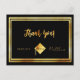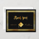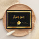 Une carte de remerciement pour le diplômé. Un fond de couleur noire et un cadre en faux or. Sur le devant, un style de lettre manuscrit et le texte : Merci ! Année de diplôme et un chapeau de diplômé.