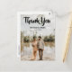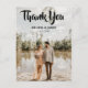 Carte de remerciement moderne avec un script en gras et votre photo de mariage. Ajoutez également votre message de remerciement et votre photo au dos.