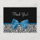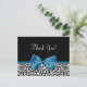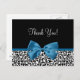 Personnalisez cette motif empreinte de léopard en noir et blanc tendance merci carte postale, avec un ruban costume cobalt ou Mykonos bleu attaché à un joli arc girly, en ajoutant un message personnalisé à la zone de texte personnalisable. Cette carte postale de style moderne fait partie de la collection Poster de animal Fall Fashion. Image imprimée plate, pas le ruban réel.