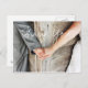 Mariée et Salle se tenant la main devant un mur en bois rustique.