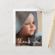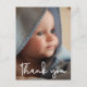 Personnalisé avec la photo de votre bébé sur le devant et le message spécial sur le dos. Cette conception utilise une police de script élégante dessinée à la main pour une touche de sophistication. Express votre enthousiasme à annoncer la naissance de votre enfant et envoyez votre gratitude en même temps. La superposition des mots "Merci" est dans une police blanche moderne.