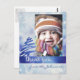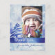 Ce design hivernal présente un arrière - plan de flocon de neige texturé avec une sensation de grunge vintage, et une bannière bleu vif avec un arbre de Noël et les mots "merci" dans une police d'écriture amusante et scriptée et une texture hivernale. Customisez avec votre propre photo : customisez facilement ce design gratuitement avec votre propre photo de famille, de couple ou de bébé ! Si vous n'êtes pas satisfait du placement, cliquez sur "Customiser!" ci-dessus pour redimensionner et déplacer l'image. Exemple de photo de bébé par Andrew Vargas.