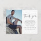 Un carte de remerciements photo minimal funéraire avec un script manuscrit merci et simple typographie. Cliquez sur le bouton Modifier pour customiser facilement ce modèle de remerciement avec vos propres détails et la photo de votre être cher.