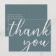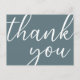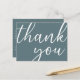 Un fond gris ardoise. Sur le devant, un grand texte manuscrit avec la mention : Merci. Dos : Modèle pour votre note de remerciement et nom/noms. Astuce : Si vous ne voulez pas que cela ressemble à une carte postale, cliquez sur personnaliser, allez au dos et supprimez le séparateur et le timbre-poste.