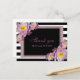 Faux glittery Rose Floral noir et blanc rayures Merci Carte postale