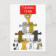 Les chats en caricature se tiennent sur les épaules de l'autre, le chat supérieur tenant un signe rouge qui dit "Merci Équipe".