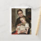 Une mère du 19ème siècle en tenue de famille sévère tient son bébé avec cheminée et espace cuisine en arrière - plan. Art vintage de la peintre suédoise Gerda Tiren.