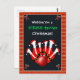 This festive Christmas bowling postcard features Santa-themed bowling pins and a bright red holiday bowling ball set against a cheerful Christmas plaid background the perfect design to spread seasonal fun and party cheer.