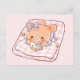 Carte Postale Mignon ours lisant des mangas Shojo sur un lit con