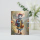 Carte Postale Mignonne souris fille sur le chemin de l'école, co