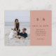 Ce mariage élégant et moderne sauve les cartes postales datées disposent d'un design simple en terre cuite et en texte noir qui respire le style minimaliste, avec votre photo personnelle préférée. Ajoutez vos initiales ou votre monogramme pour les rendre complètement vôtres.