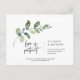 Minimalisme de verdure, l'amour est patient, faire-part de mariage / carte de célébration de fête reportée ou reprogrammée, en police noire.