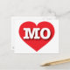 Cette carte postale est dotée d'un coeur rouge vif contenant les lettres coques en haut, blanches et audacieuses MO, l'abréviation officielle du Missouri, l'état de show me. Le verso de la carte postale est vide, en attendant votre texte customisé ou vos sentiments manuscrits.