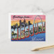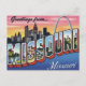 Celebrate the Show Me State with this eye-catching retro "Greetings from Missouri" postcard. This classic large-letter design prominently features the St. Louis skyline and the iconic Gateway Arch, capturing the spirit of Midwestern travel and exploration. The vintage art style and vibrant colors make this a perfect keepsake for Missouri residents, tourists, history lovers, souvenir collectors, or anyone who appreciates classic Americana and US state pride. Send a unique piece of nostalgia or display it as small, framed art.
