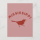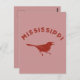 Ces cartes postales présentent une illustration simple d'un oiseau moqueur, l'oiseau d'état du Mississippi, avec le Mississippi épelé ci-dessus. L'illustration et le texte de la marron foncé ont un style déprimé pour un look rétro et vintage et est placé contre un arrière - plan rouge défraîchi.
