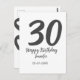 Carte Postale modèle noir date nom anniversaire 30 ans