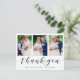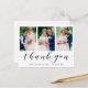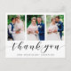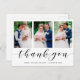 Envoyez un carte de remerciements de collage photo moderne personnalisé à votre famille et à vos amis pour les remercier d'avoir assisté à votre mariage. Cet élégant modèle design comprend trois de vos photos mariages encadrées en blanc. Ci-dessous, dans le script de calligraphie noir, il dit, "Merci" avec votre nom et date pour vous de personnaliser. Le dos de la carte a un message et une signature accentué par une goutte de verdure d'eucalyptus aquarelle. C'était une joie à créer pour vous. Félicitations pour votre mariage ! Conçu par l'artiste ©Susan Coffey.