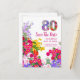 Célébrez un événement important avec cette vibrante carte postale de sauvegarde de date d'anniversaire 80 ans, avec un « 80 » rempli de fleurs colorées et une bordure de jardin lumineuse.