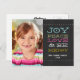 ENVOYEZ LES BONS SOUHAITS À LA FAMILLE ET AUX AMIS AVEC CETTE CARTE DE VOEUX MODERNE DE VACANCES DE PHOTO DE TABLEAU DE NOIR DE JOIE. ELKE CLARKE© POUR LA GALERIE DE MONOGRAMME. LA JOIE, PAIX, AMOUR ET SOIT JOYEUSE. Vous pouvez "la customiser" et changer la couleur des mots pour assortir votre photo. Ajoutez votre propre photo, en saluant le message et le texte sur l'avant de la carte, telle que votre nom de famille, ou votre initiale de monogramme ou vos prénoms. Le choix est à vous à être créatif et pour faire lui tous vos propres. AJOUTEZ PLUS DE TEXTE ET DE PHOTOS AU DOS DE LA CARTE SI VOUS SOUHAITEZ. Remplacez la photo témoin par votre propre portrait de Noël de famille.