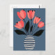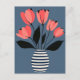 Des pétales de cobalt audacieux fleurissent au-dessus d'un vase à rayures roses, évoquant une humeur ludique du milieu du siècle sur une base corallienne molle.