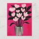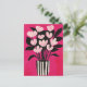 Des pétales magenta rayonnants fleurissent d'un vase classique à rayures noires sur un arrière - plan à la menthe légère pour un cool vintage dynamique.
