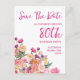 carte postale moderne florale pour les 80 ans d'anniversaire Save The Date.