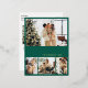 Élégante calligraphie Minimaliste Gold Foil Script Vert 4 Photo Collage Joyeux Noël Carte de vacances. Ce modèle festif, mimimaliste, fantasque de quatre (4) cartes de vacances photo présente un joli collage photo et dit "Joyeux Noël"! Le texte de salutation "Joyeux Noël" est écrit dans une belle main lettré tourbillonnant swash-tail type de police en or sur arrière - plan de couleur verte. À l'envers avec modèle texte de salutation avec un petit doodle de coeur sur blanc et un modèle photo horizontal. Jolie carte de voeux pour votre famille et vos amis pendant la période de Noël.