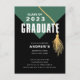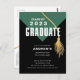 Classe moderne & audacieuse de 2022 l'invitation de la fête de remise de diplômes avec un casquette vert grad avec un goût d'or sur un arrière - plan noir. Visitez notre boutique pour voir ce design dans une variété de couleurs scolaires.